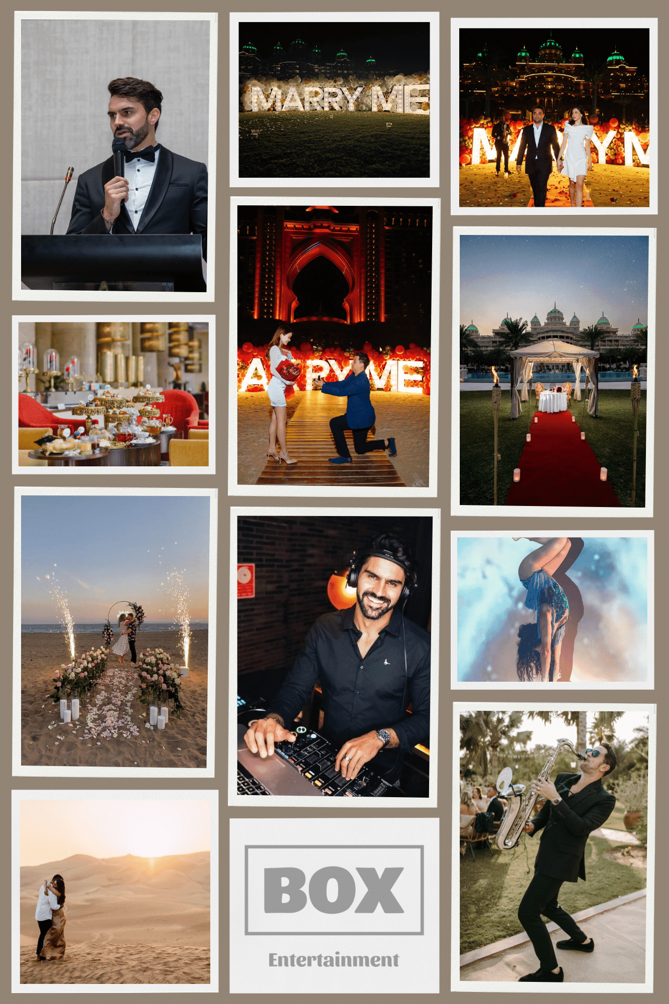 and let’s bring your vision to life. Whether you need a DJ, a saxophonist, or a full entertainment lineup, Box Entertainment has you covered!